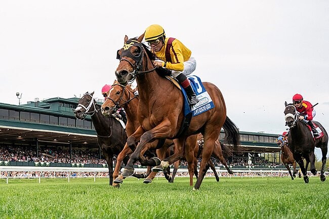 Ridden patiently by Joel Rosario, the Wesley Ward-trained bay was forced to bide her time until a gap appeared approaching the final furlong. Finishing with a flourish, she led close home to beat stablemate Lady Holywood by half a length.