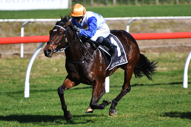 The Kurtis Pertab-trained and owned son of US Navy Flag had impressed with a front-running win over 800m at Wanganui and repeated the dose on Saturday despite stepping up to 1200m in the NZB Insurance Pearl Series 2YO (1200m).