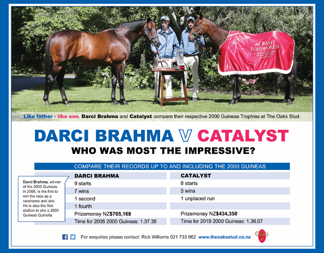 In 2005 Darci Brahma won the New Zealand 2000 Guineas. 14 years later, his son Catalyst followed in his footsteps. Who won it most impressively?